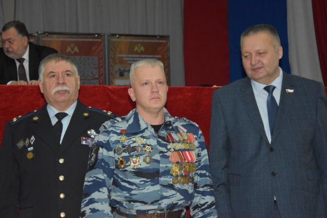 В рамках церемонии самым достойным сотрудникам правоохранительных органов – участникам боевых действий на Северном Кавказе были вручены медали «За офицерскую честь» и другие награды.