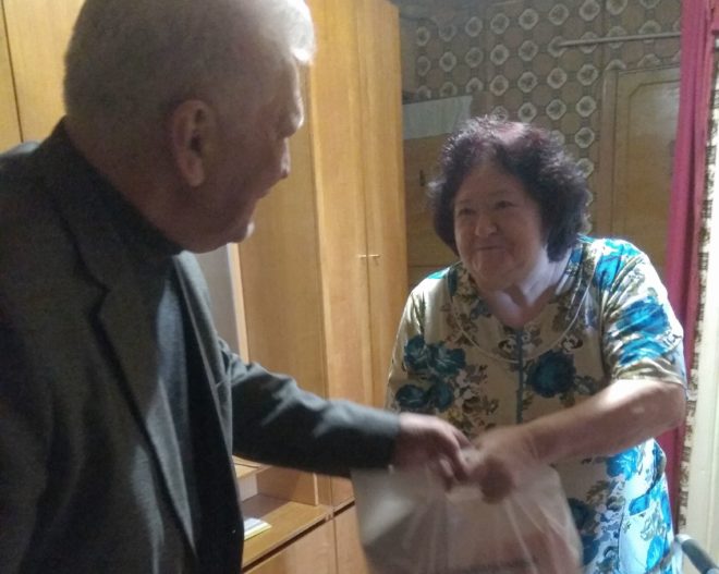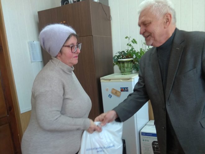 На встрече заместитель руководителя Саратовского регионального отделения «ОФИЦЕРОВ РОССИИ», председатель Благотворительного фонда «Родина. Вера. Честь» Владимир Кудинов вручил ветеранам продовольственные наборы, поблагодарил их за труд и воспитание защитников Отечества.